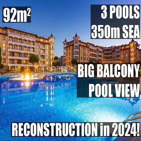 The apartment offers an equipped kitchen which includes a microwave, an electric kettle, and a fridge. Mediterranean dishes are served in the restaurant Djanny, set approximately 5 minutes' drive away. Sunny Beach bus station is quite close to the 91 m^2 Apartment Bella - 3 Pools, 2 Bedrooms & 2 Bathrooms. Offering a solarium, a treatment room, and a sauna, the property tempts guests with additional relaxation through beauty treatments, a hairdresser, and body wraps. Various sport options, such as snorkelling, diving, and ping pong, are provided in the area.